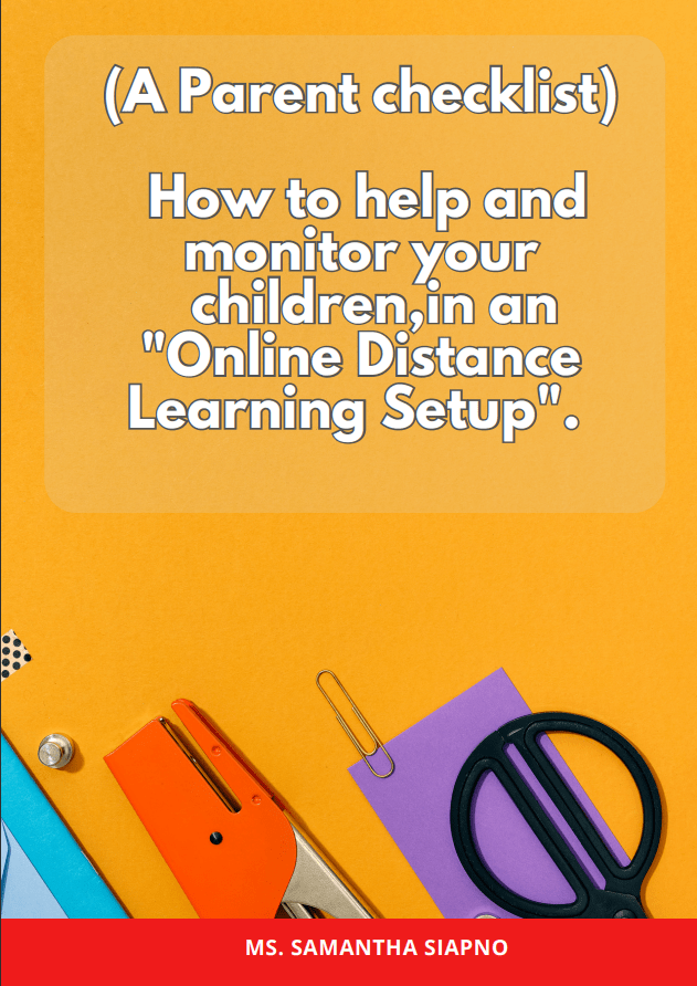 This is an E-book made by a Teacher and a Class Adviser (yours truly), which are dedicated to Filipino Parents, who experienced to assist and monitor their child / children in their full “Online Classes” and “Hybrid / Blended Classes”.